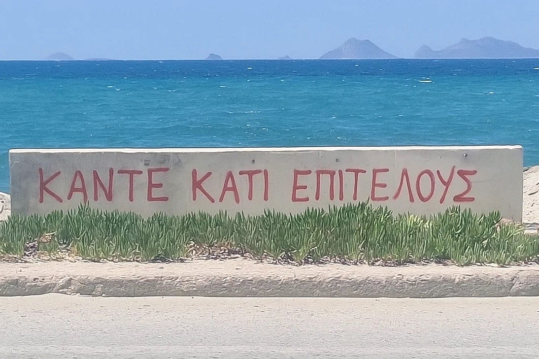 Αν και ενδεικτικό μιας υποβόσκουσας δυσαρέσκειας, ένα και μοναδικό γκράφιτι σε κάποιο σημείο του νησιού δεν συγκρίνεται με τις κινητοποιήσεις που βλέπουμε και φέτος σε άλλες περιοχές της Ευρώπης ενάντια στην αλόγιστη τουριστικοποίηση.